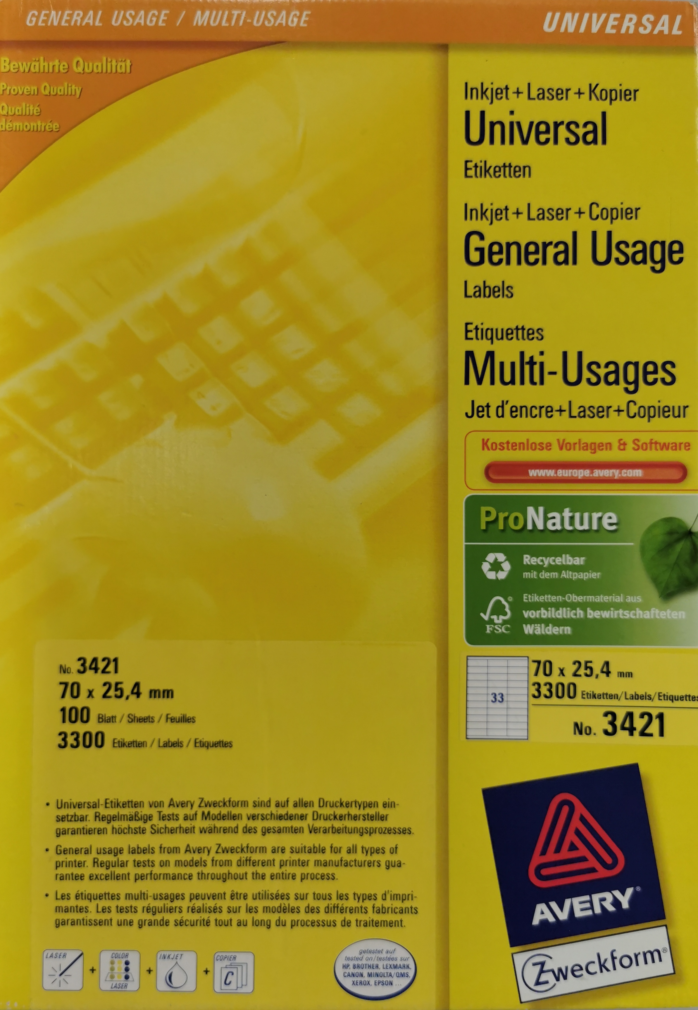 Το μέγεθος των φύλλων πρέπει να είναι Α4 και οι διαστάσεις του κάθε label 48,5×16,9 mm.