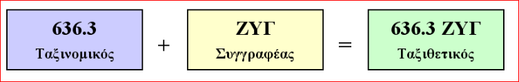 Στη Δεκαδική Ταξινόμηση Dewey, κάθε θέμα μεταφράζεται σε έναν αριθμό, ο οποίος ονομάζεται ταξινομικός. Έτσι ένα βιβλίο του οποίου το θέμα σχετίζεται με την εκτροφή προβάτων θα λάβει τον αριθμό 636.3 ως ταξινομικό. Για την τοποθέτηση του βιβλίου στο ράφι πίσω από τον ταξινομικό τοποθετούνται τα τρία πρώτα γράμματα του επιθέτου του συγγραφέα) π.χ. Ζυγογιάννης - ΖΥΓ) ή του τίτλου του έργου αν αυτό είναι συλλογικό.